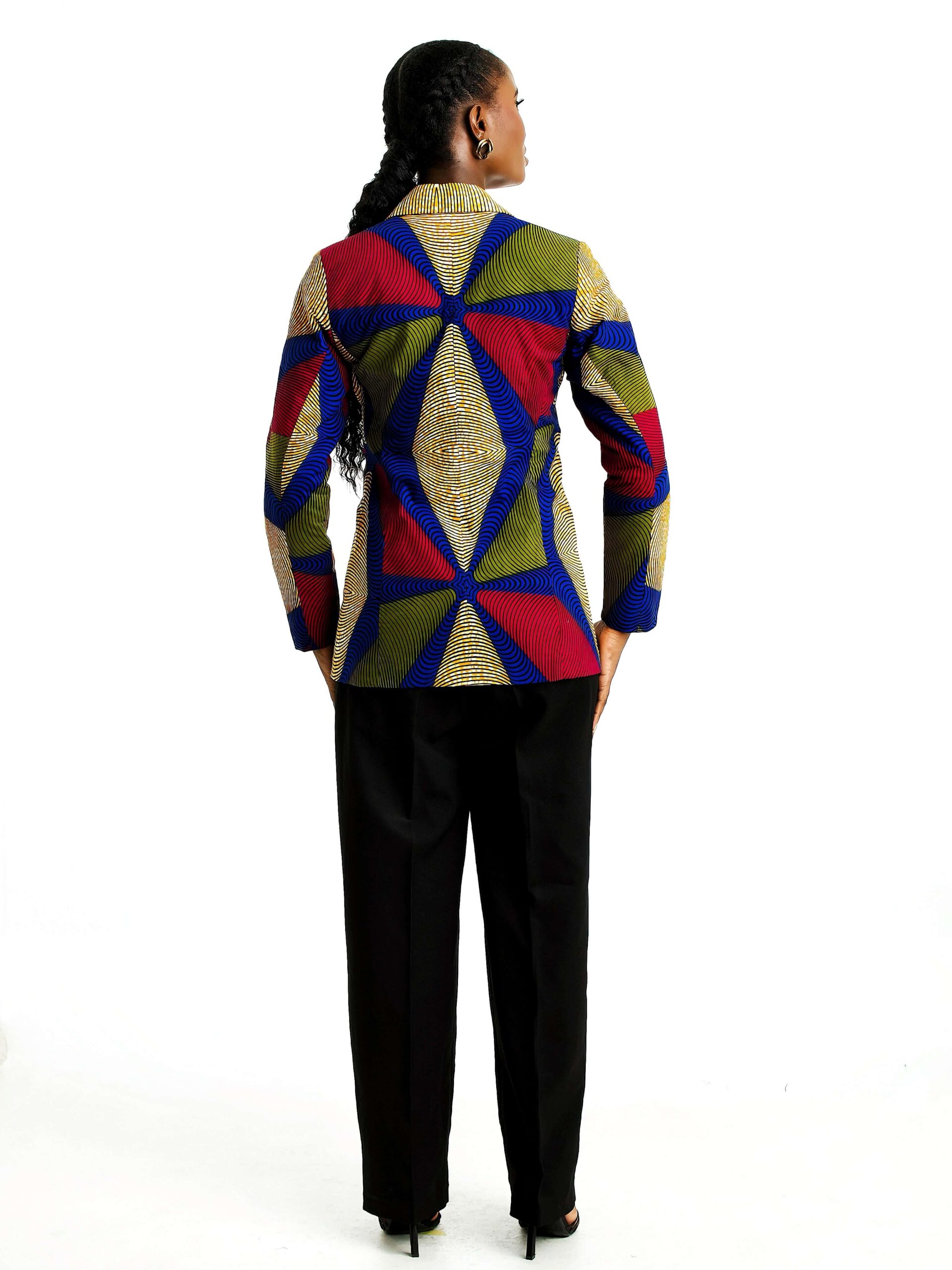A Structured tailored lapel jacket . Definitely making a bold statement with this classic Nkrumah pencil pattern.