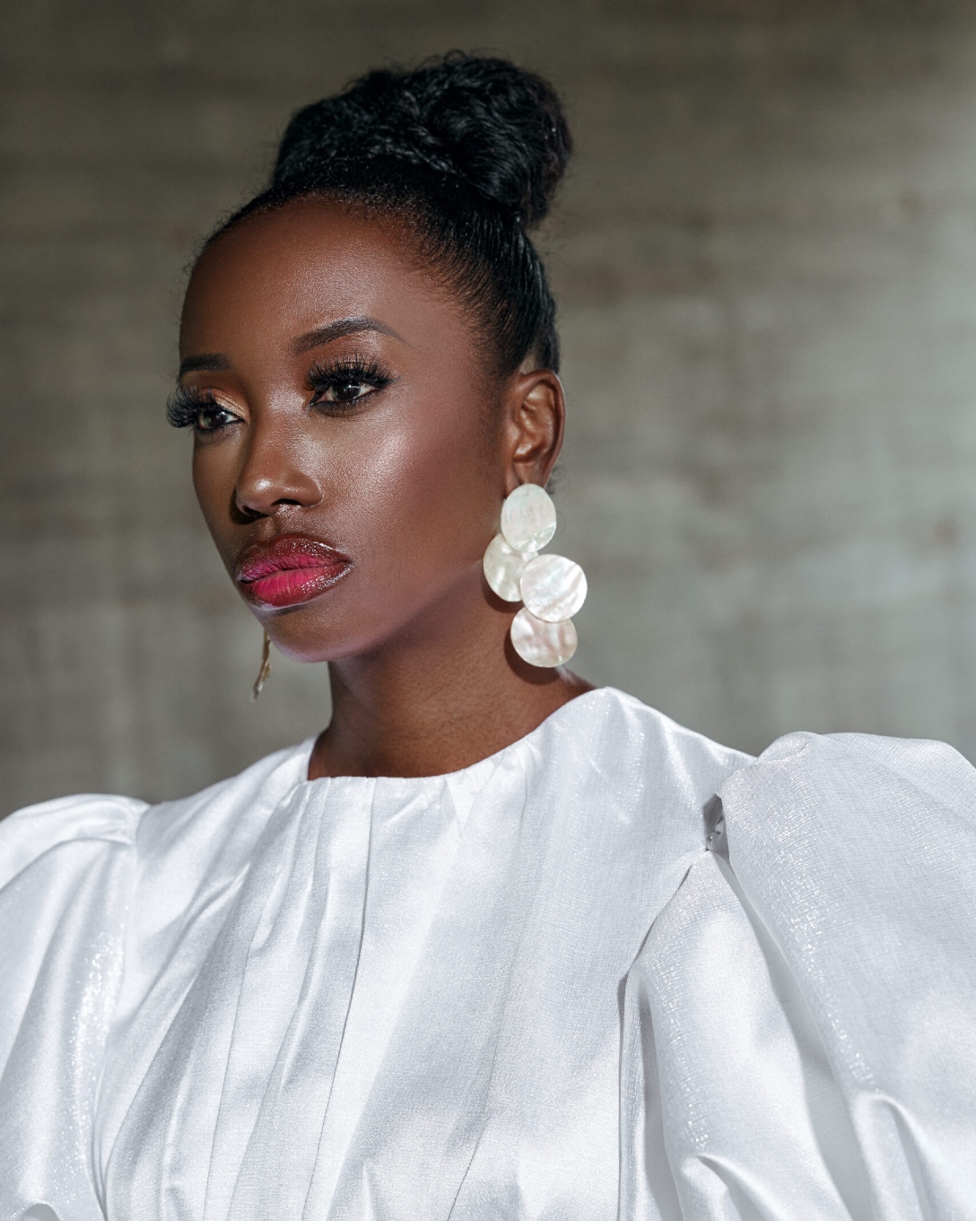 Divine , classy and a little sassy. Asymmetric side opening cutout with meticulously pleated bodice and gathered bodice with puffy sleeves .
