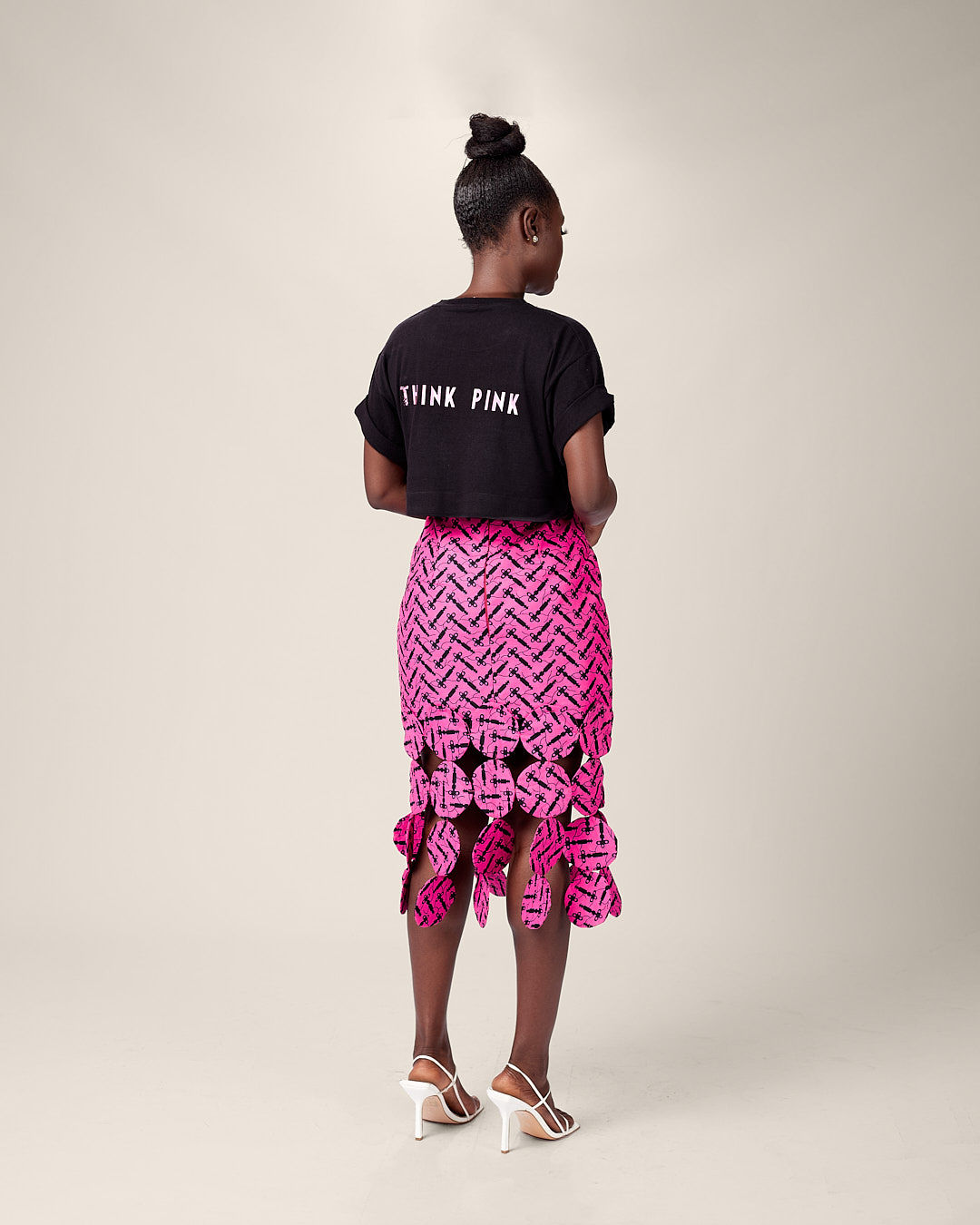 Playful and certainly versatile . The minimalist tye dye motif guides us through our silhouette pick for this asymmetric skirt. Paired with a crop top in perfect unison.