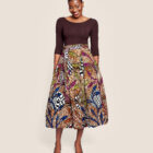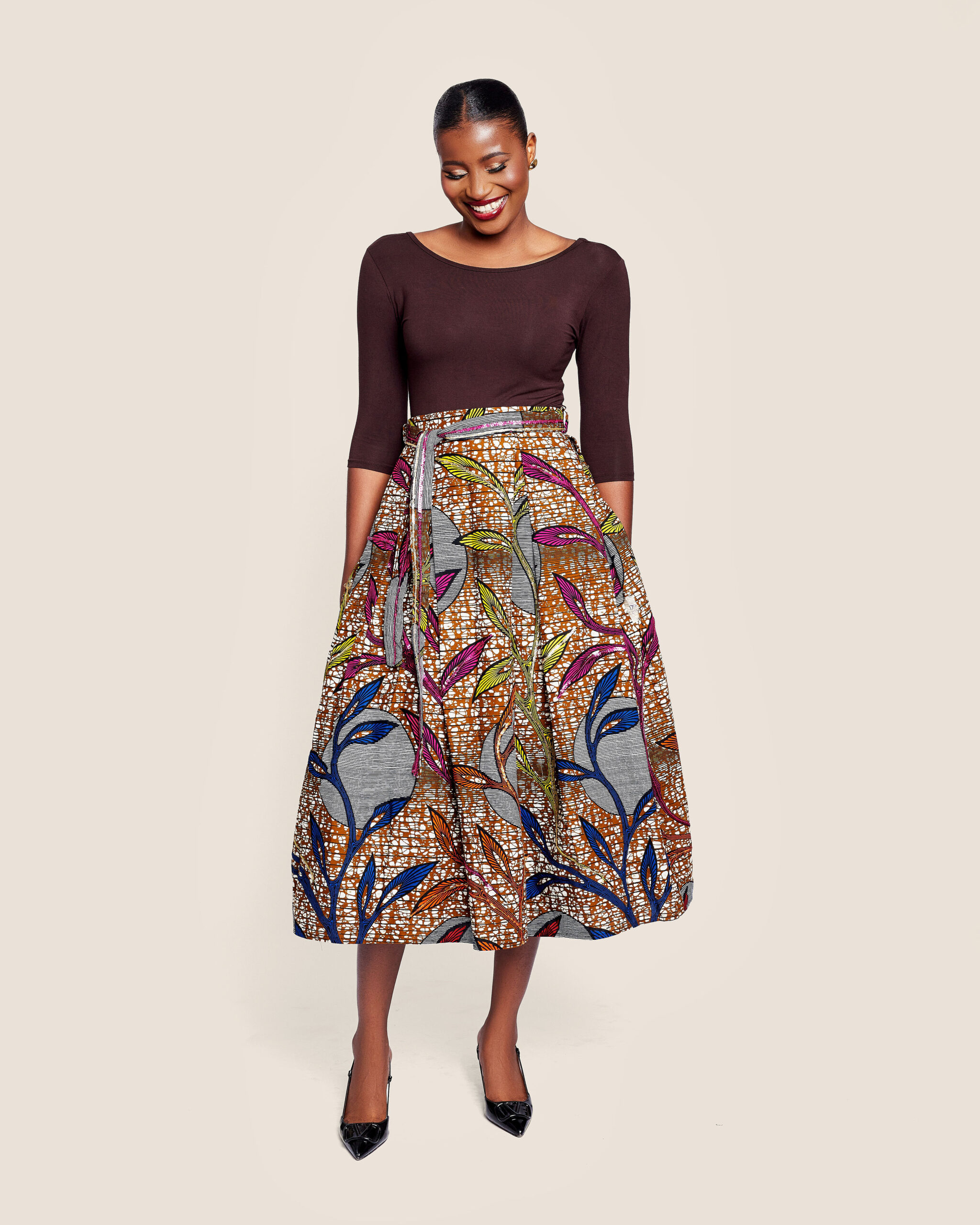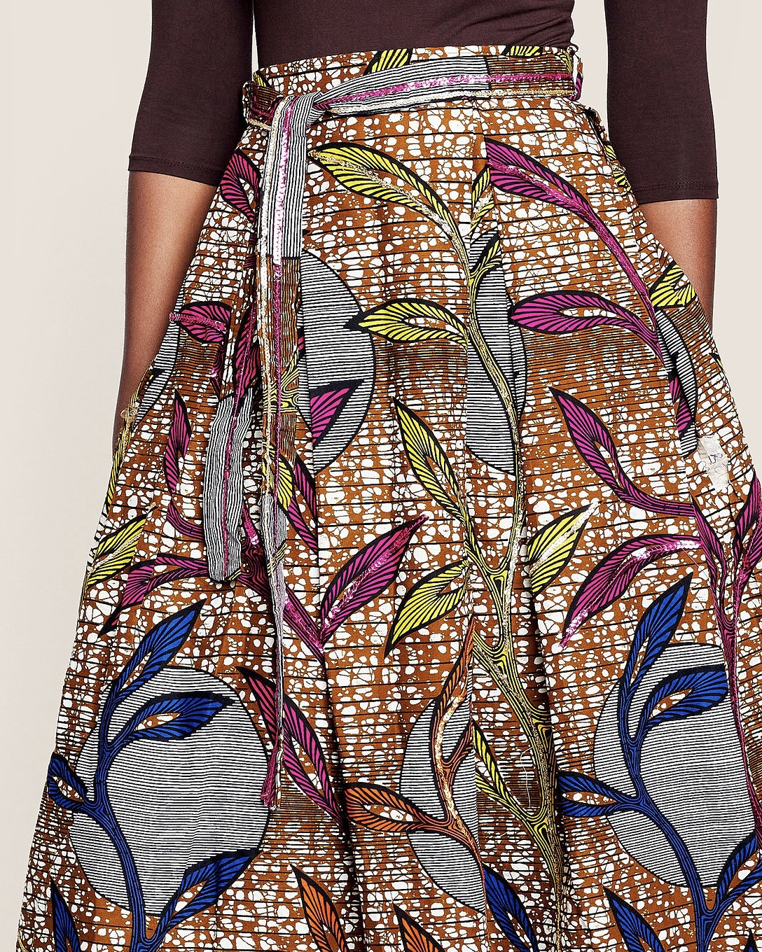 Playful multi print skirt with sequenced Detaling . Style from day to night .